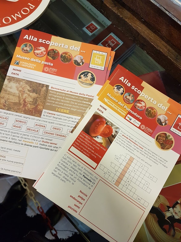 Come in tutti i Musei del Cibo, anche qui troverete i libri di attività appositamente pensati per i bambini, con giochi, quiz e indovinelli che li accompagnano lungo il percorso di visita.