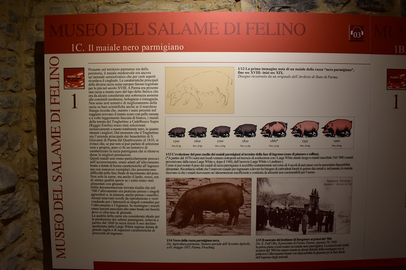 All’interno del museo è possibile ripercorrere la storia e cultura millenaria dietro a questa eccellenza gastronomica. A partire dalla sua materia prima: il maiale nero parmigiano intorno al quale ruota tutta la storia antichissima della norcineria e della produzione casalinga degli insaccati.