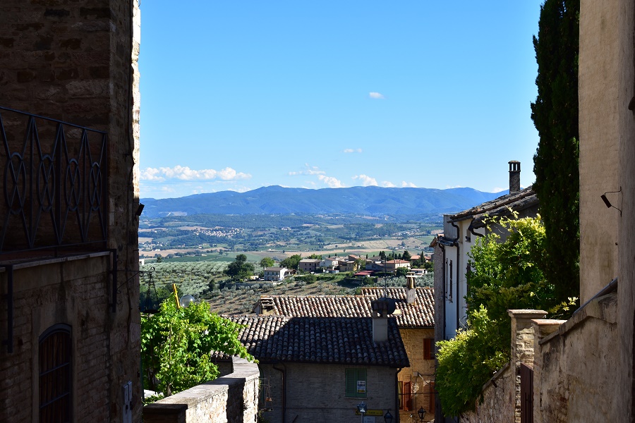 Il “borgo fiorito” di Spello si allunga su uno sperone del Monte Subasio con le sue mura fortificate, le case rosate, i vicoli acciottolati e i fiori, tantissimi fiori ad ogni angolo che lo impreziosiscono e lo rendono ancora più pittoresto e fotogenico.