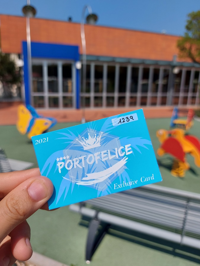 La card include una giornata di servizio spiaggia e un gettone per la lavanderia. Inoltre permette di partecipare ai corsi dell’area fitness, di accedere alle piscine e al baby club in anticipo rispetto all’orario normale, di usufruire della palestra in maniera gratuita ed esclusiva e di partecipare a gite ed escursioni organizzate dal camping.