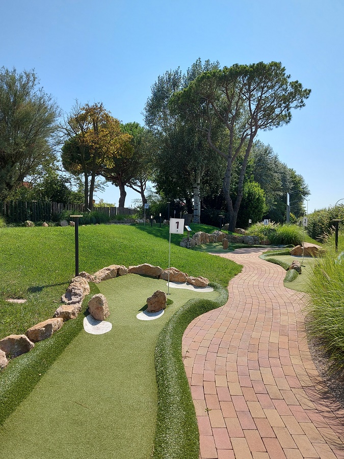 C’è perfino il minigolf, un trenino che fa il giro del campeggio, oppure si può noleggiare un risciò per scorrazzare tra i viali o fare un giro in paese.
