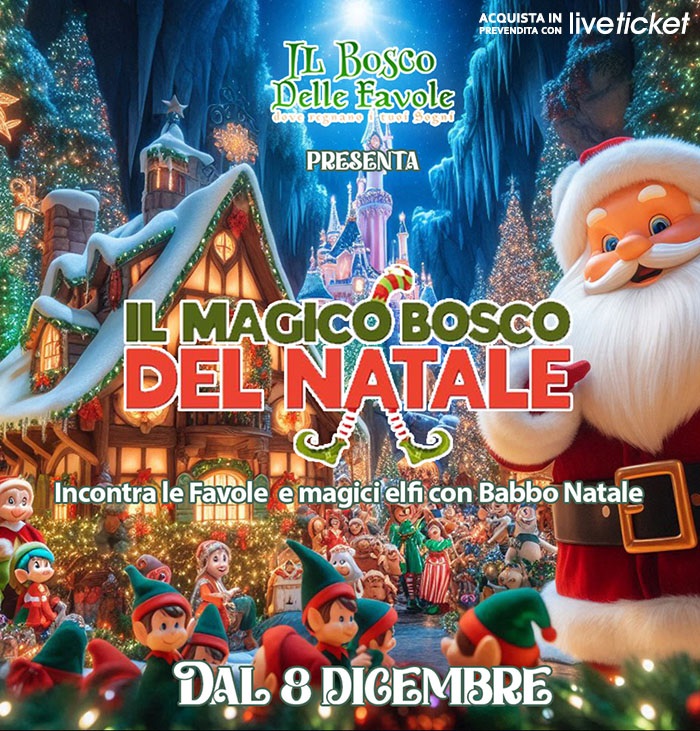 Dai creatori del Bosco delle Favole nasce il Magico Bosco del Natale, a Cassino presso le Terme Varroniane. Al Magico Bosco del Natale troverete l’ufficio postale degli Elfi, la fabbrica dei giocattoli, la stanza da letto di Babbo Natale e dei suoi amici elfetti, il Polo Nord e la stanza del trono di Santa Claus; ci sarà anche il Mercatino di Natale con eccellenze artigianali ed eno-gastronomiche del territorio. Maggiori info qui.
