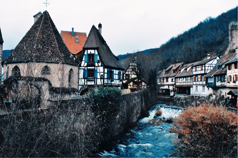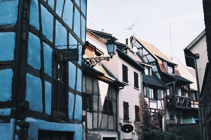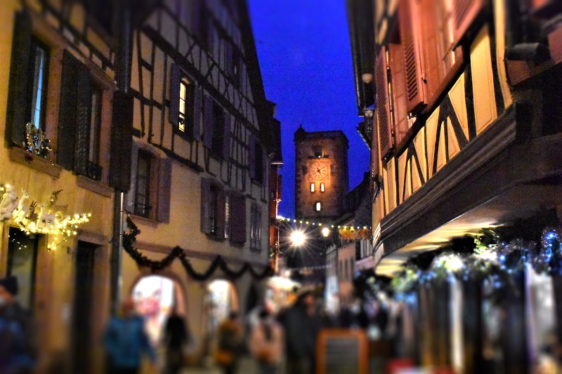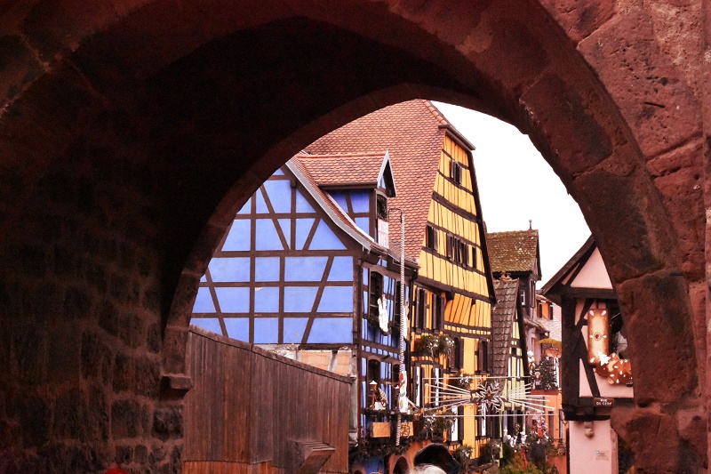 Anche Kaysersberg sembra uscito da un libro di fiabe come un po’ tutti i villaggi alsaziani: case a graticcio, alcune con facciate dai colori accesi, altre affacciate sul fiume, e le rovine del castello a dominare il panorama. L’atmosfera che si respira è quella medievale, e sotto Natale si ha l’impressione di trovarsi all’interno di un quadro.