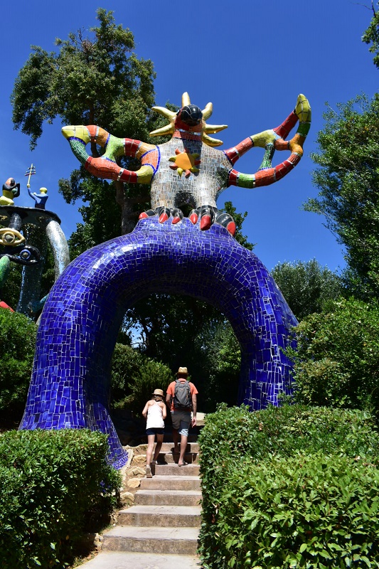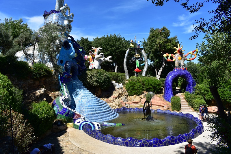 Si tratta di un parco artistico creato a partire dalla fine degli anni ’70 da Niki de Saint Phalle, un’artista franco-statunitense che, durante un viaggio a Barcellona, fu folgorata dallo stile di Antoni Gaudì visitando il Parc Güell. Questa visita, e quella al Giardino di Bomarzo, furono le fonti di ispirazione per questa opera unica, che impegnò Niki de Saint Phalle e una numerosa squadra di artigiani, operai specializzati e famosi artisti contemporanei per diversi anni. Il parco fu terminato nel 1996 e aperto al pubblico due anni dopo.