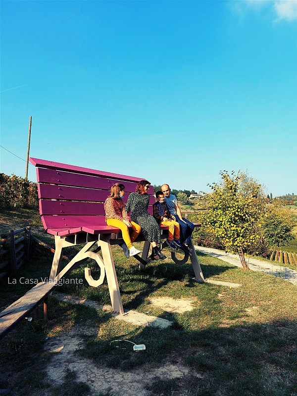 L’art park La Court è un parco artistico che sorge nei vigneti della tenuta La Court, a Castelnuovo Calcea. Un museo a cielo aperto in vigna dove arte, vino e paesaggio dialogano e permettono di fare un’esperienza insolita. Devo essere sincera, alcune delle installazioni avrebbero bisogno di una sistemata, ma nonostante questo si tratta di un luogo molto interessante e che vale la pena visitare con i bambini: la scultura gigante all’ingresso catturerà subito la loro attenzione, così come la panchina gigante all’interno del parco.