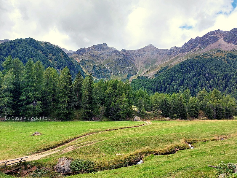 Nella stessa giornata in cui andrete al Kinderland, vale la pena ritagliarvi del tempo per fare questa facile passeggiata che parte proprio dal parco giochi. Prendendo il sentiero ben segnalato, passeggerete in mezzo ad un panorama meraviglioso sulle montagne del Parco dello Stelvio, costeggiando prima delle baite e poi un punto in cui ci sono delle pareti rocciose frequentate dai climber.