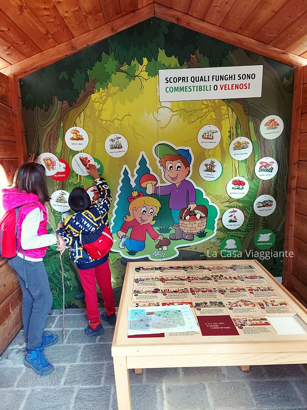 Pannelli informativi e giochi permettono ai bambini di imparare giocando e sperimentare emozioni naturali: per esempio annusando il profumo delle erbe aromatiche e dei fiori, ascoltando i suoni del legno, imparando informazioni interessanti sui funghi o sulle api.