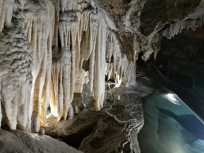E l’acqua è l’elemento che vi accompagnerà durante tutta la visita: il fiume si sente scrosciare in sottofondo, poi si nasconde e infine riappare in una spettacolare cascata all’interno di un’enorme sala. Non capita tutti i giorni di ammirare una cascata sotto terra!