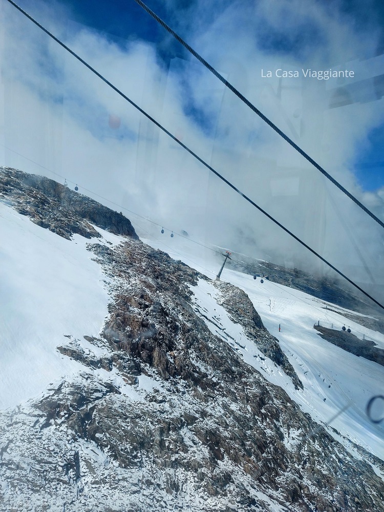 Dalla stazione di valle, dovrete prendere ben 3 tronconi degli impianti di risalita Gletscherbus 1, 2 e 3, che vi porteranno fino ai 3250 metri da cui vi sembrerà di trovarvi sul tetto del mondo. Noi siamo stati sfortunati col meteo: per la visibilità che c’era quel giorno lassù, avremmo potuto essere sul tetto del mondo come nella bassa padana e non avremmo comunque capito la differenza.