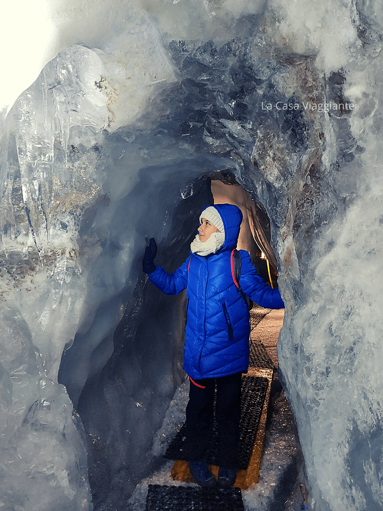 Come accennavo, l’ingresso al Natur Eis Palast è consentito a partire dai 6 anni: il percorso in alcuni tratti è scivoloso e bisogna percorrere alcune scale a pioli, tenetelo presente. Altra cosa fondamentale, arrivate attrezzati: siamo oltre i 3000 metri, vi servirà un abbigliamento adeguato (le tute da sci andranno benissimo, o comunque roba abbastanza pesante, ricordatevi i guanti) e soprattutto scarpe robuste, impermeabili e non scivolose (evitiamo scivoloni sul ghiaccio, grazie). Tenete presente che la temperatura all’interno della grotta di ghiaccio è costante a 0°.