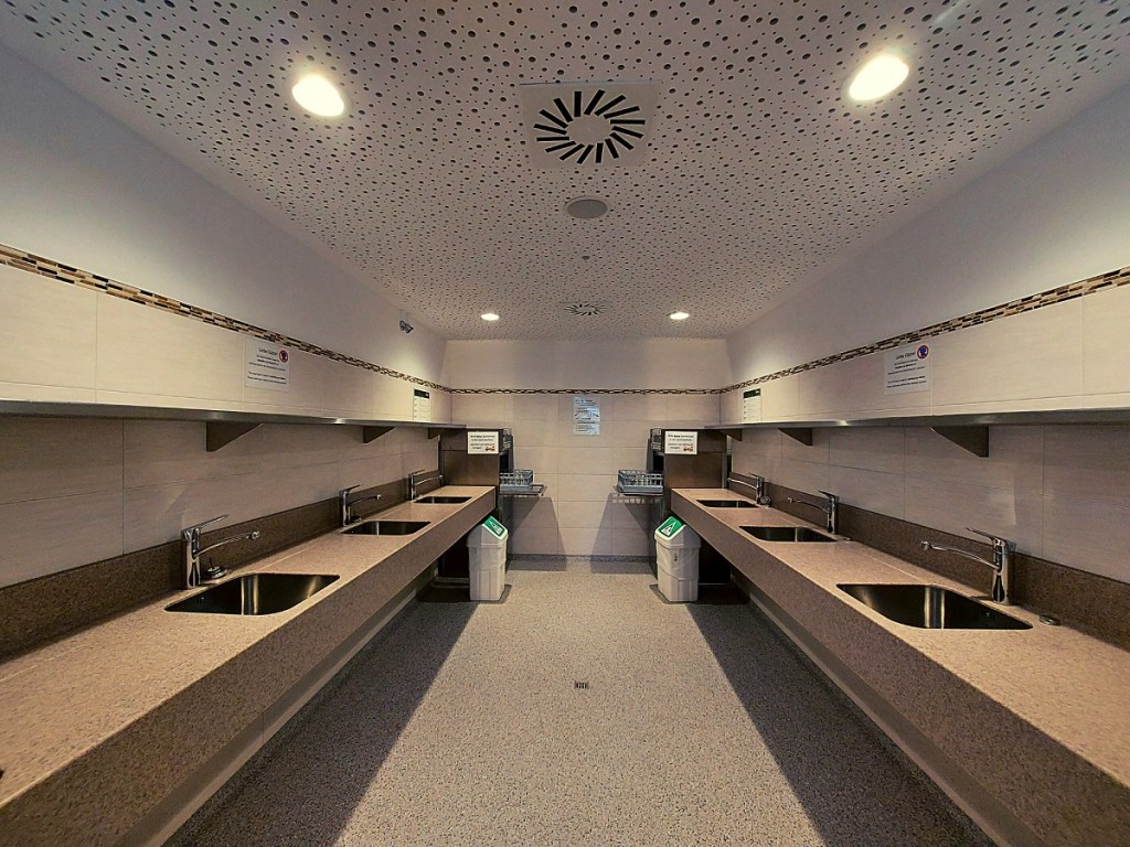 I servizi igienici sono davvero superlativi: curati, impeccabili, spaziosi e riscaldati, con tutti gli accessori che possano rendere le cose più comode agli ospiti, dalla lavastoviglie al locale lavanderia dove poter stendere la biancheria ad asciugare. I blocchi sanitari sono addirittura 5, infatti non abbiamo mai trovato neanche mezza coda, e c’è grande attenzione anche per i piccoli che hanno dei servizi dedicati a loro.