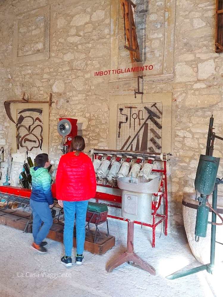Antichi strumenti che venivano impiegati dai bisnonni per fare il vino, ricostruzioni di ambienti come l’ufficio con documenti d’epoca originali, o il laboratorio per le analisi del vino, permettono anche ai bambini di immergersi nella storia di questo lavoro così antico e così importante per queste zone: quello della produzione del vino.