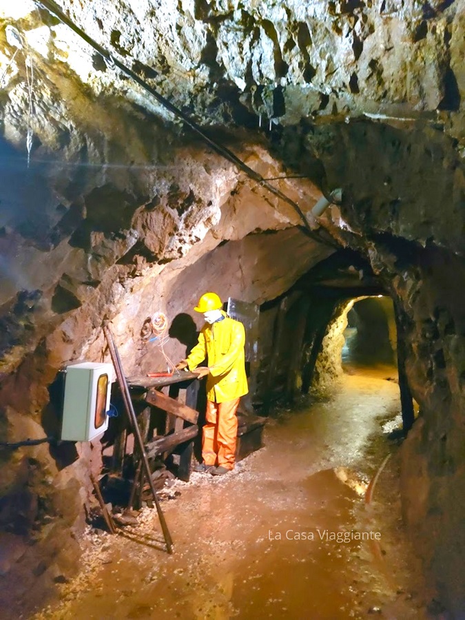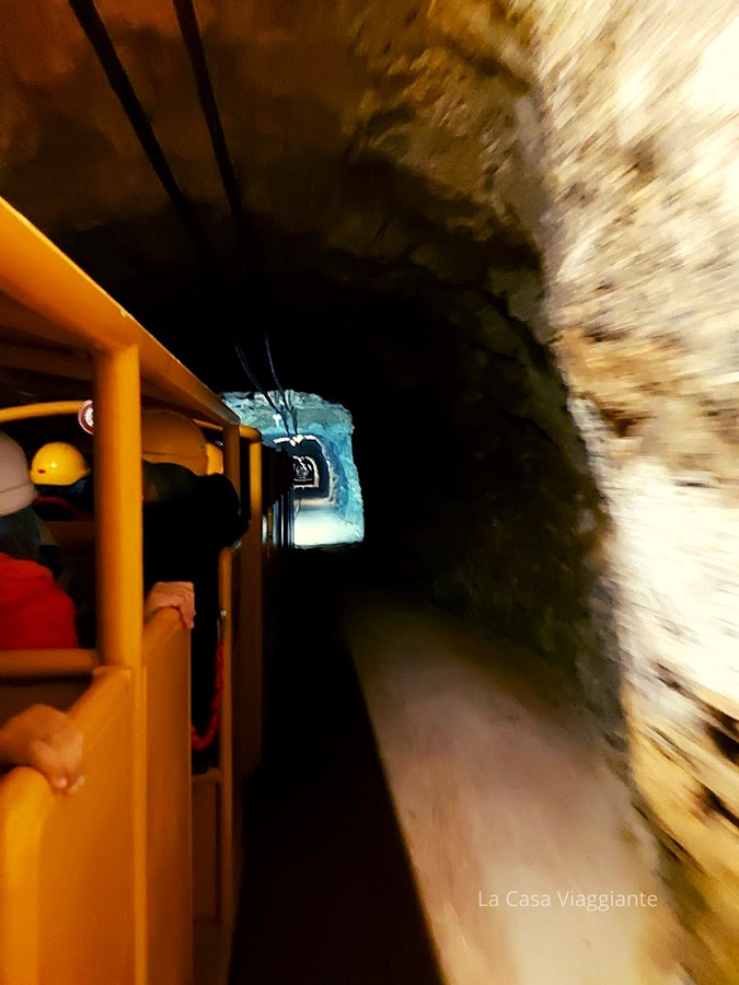 Le guide sono davvero brave a trasmettere un sacco di informazioni interessanti in un modo assolutamente coinvolgente anche per i bambini, che quaggiù scoprono un mondo nuovo per loro. Inoltre, lungo il percorso di visita ci sono allestimenti e ricostruzioni che rendono il tutto ancora più vivido: per esempio il deposito di esplosivo, o i manichini che mostrano in che modo i minatori si spostavano da un livello all’altro della miniera. C’è addirittura la possibilità di provare ad azionare un martello pneumatico, per sentire in prima persona quanto fosse rumoroso, pesante e difficile da maneggiare. In un altro punto invece si può sentire il rumore di un’esplosione, in una sezione che simula il posizionamento dell’esplosivo in una parte rocciosa per aprire un nuovo varco nel cuore della montagna. Insomma, un’esperienza decisamente immersiva e avventurosa, che piacerà tantissimo anche ai bambini.