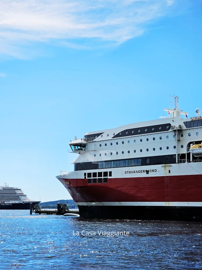 All’andata abbiamo viaggiato sulla MS Stavangerfjord, una nave di tipo cruise ferry: il nome dice tutto, sembra proprio di trovarsi a bordo di una nave da crociera, con cabine, suite, ristoranti, negozi. Si viaggia davvero comodi, grazie alla presenza di diverse lounge, di diverse tipologie di bar e ristoranti – dal ristorante à la carte a quello a buffet, oltre a diverse caffetterie – di un’area gioco per i bambini e di diversi negozi per fare un po’ di shopping durante il viaggio, compreso il duty free.