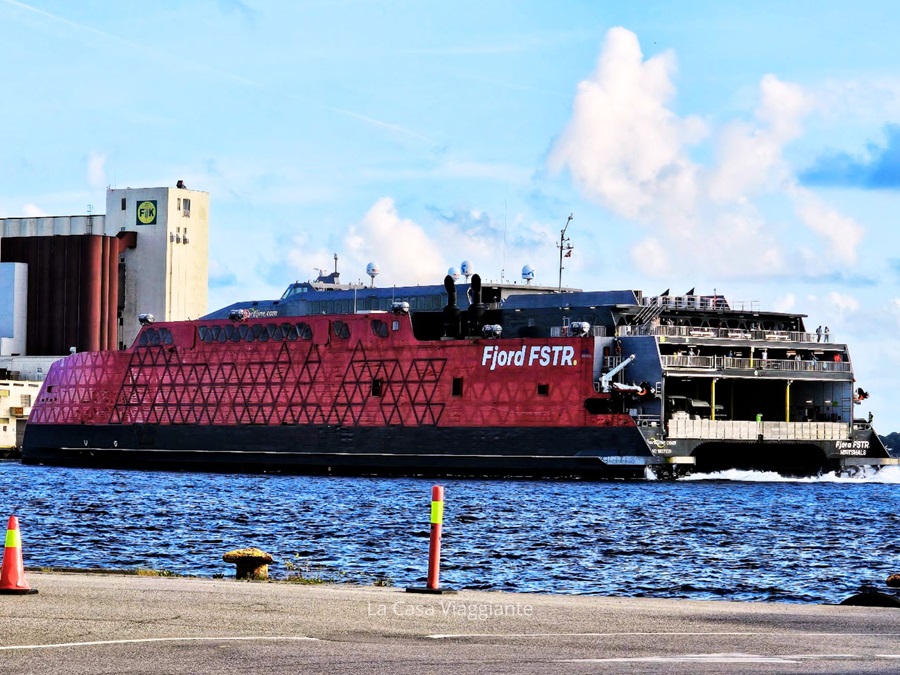 Al ritorno invece abbiamo viaggiato sulla HSC Fjord FSTR, un modernissimo catamarano high-tech ed eco-friendly in grado di attraversare lo Skagerrak in meno di due ore e mezza. Anche qui non mancano bar e ristorante, oltre al duty free shop. Avevamo il biglietto per il sabato mattina, ma a causa del meteo avevamo qualche ora di anticipo sulla tabella di marcia: ci siamo quindi presentati al porto chiedendo se fosse possibile essere imbarcati sulla nave del venerdì sera. Ci hanno messo in lista d’attesa e alla fine siamo effettivamente riusciti a partire in anticipo, guadagnando così qualche ora preziosa sul (lungo) viaggio di rientro.