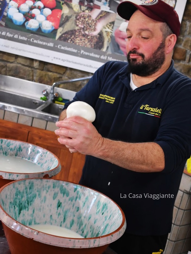 In particolare i formaggi sono protagonisti qui all’agriturismo Turuziello: questo è infatti uno dei pochi produttori autorizzati alla produzione del Provolone del Monaco D.O.P.. E poi ovviamente c’è la mozzarella: potrete assistere alla preparazione artigianale della mozzarella, fatta a mano secondo la tradizione, con dimostrazione in diretta e possibilità di assaggiare il prodotto appena fatto.