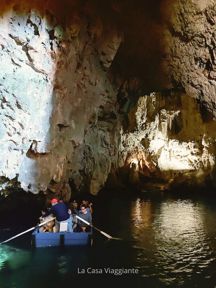 All’interno della grotta, stalattiti e stalagmiti si fondono in forme spettacolari, alcune delle quali richiamano figure quasi mitologiche. Una delle particolarità più curiose è la presenza di un presepe sommerso, posto sul fondale e visibile grazie alla limpidezza dell’acqua.