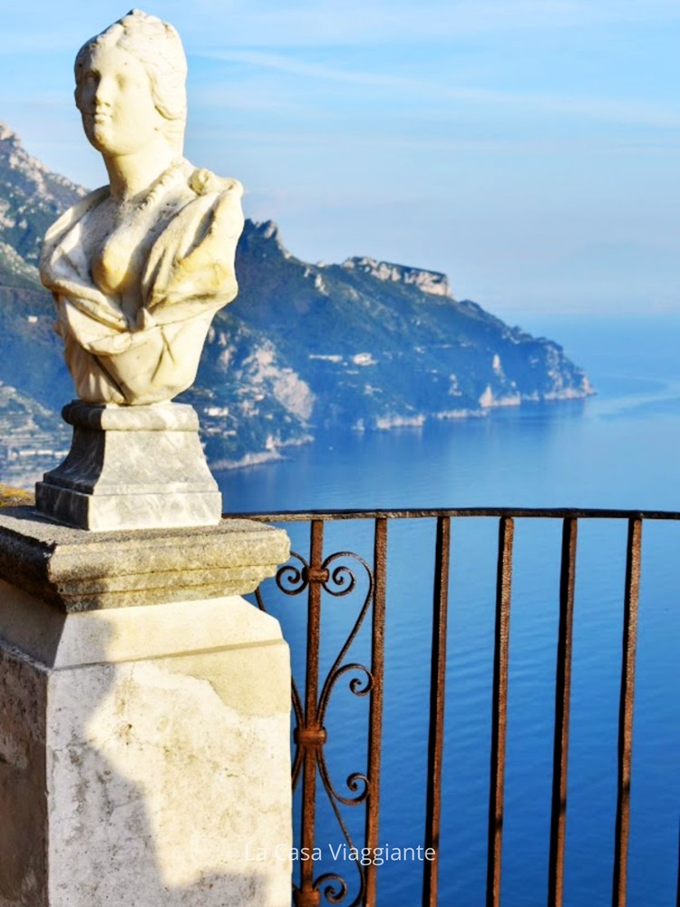 Affacciata sul vuoto e abbracciata da un filare di busti marmorei, la terrazza regala una vista mozzafiato che spazia dal Golfo di Salerno fino alle curve della Costiera, sospesa tra il blu del cielo e quello del mare. Non a caso, è stata definita da molti come “il panorama più bello del mondo”.