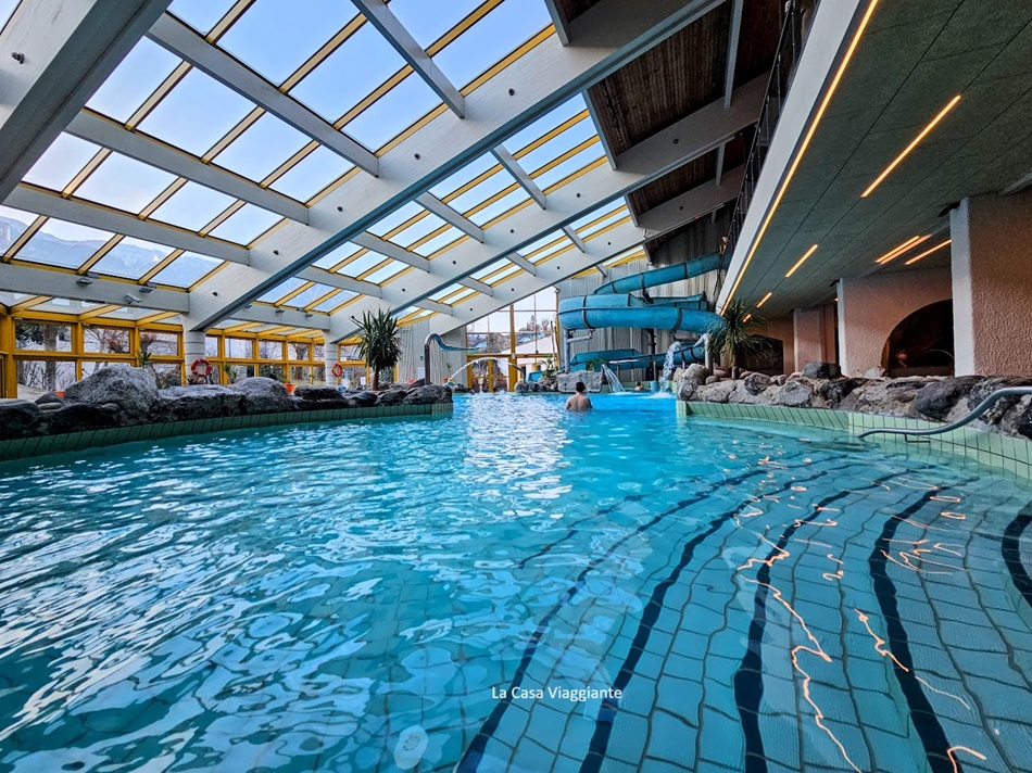 E’ risaputo, una giornata in piscina fa sempre la gioia di bambini e ragazzi, a maggior ragione se fuori fa freddo o piove, ma all’interno si può stare al calduccio e divertirsi tra piscine, idromassaggi e scivoli. E infatti nel nostro itinerario natalizio in Alto Adige ho voluto includere, oltre al Balneum di cui vi ho parlato più sopra, anche Termeavventura (lo trovate anche come Erlebnistherme) di Naturno, a 15 km da Merano.