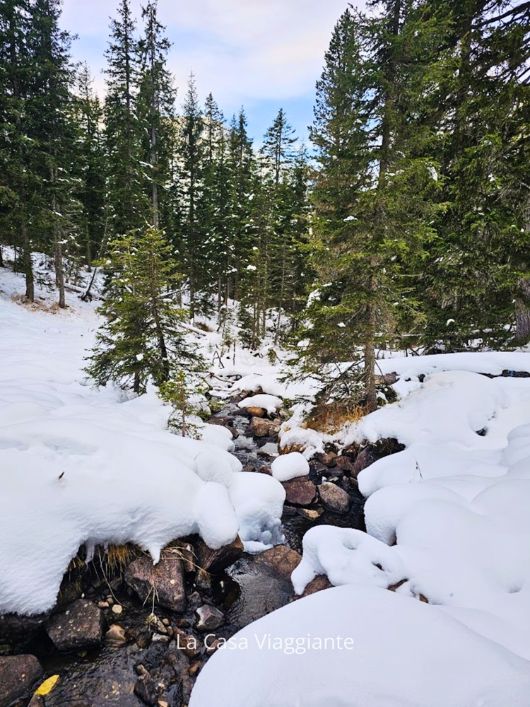 La prima passeggiata che vi consiglio è quella ai Laghetti di Colbricon, che in inverno sono completamente ricoperti di neve, così come il bosco che si attraversa per raggiungerli. Assolutamente magico!