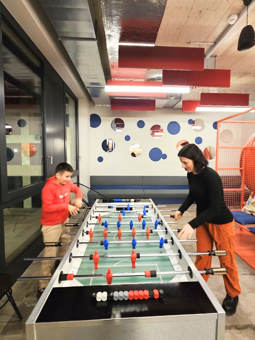 - Zone gioco e aree dedicate al divertimento, dove i bambini possono socializzare o rilassarsi dopo una giornata di esplorazione. Ogni giorno, di rientro dai nostri giri, una partita a biliardino era d’obbligo!