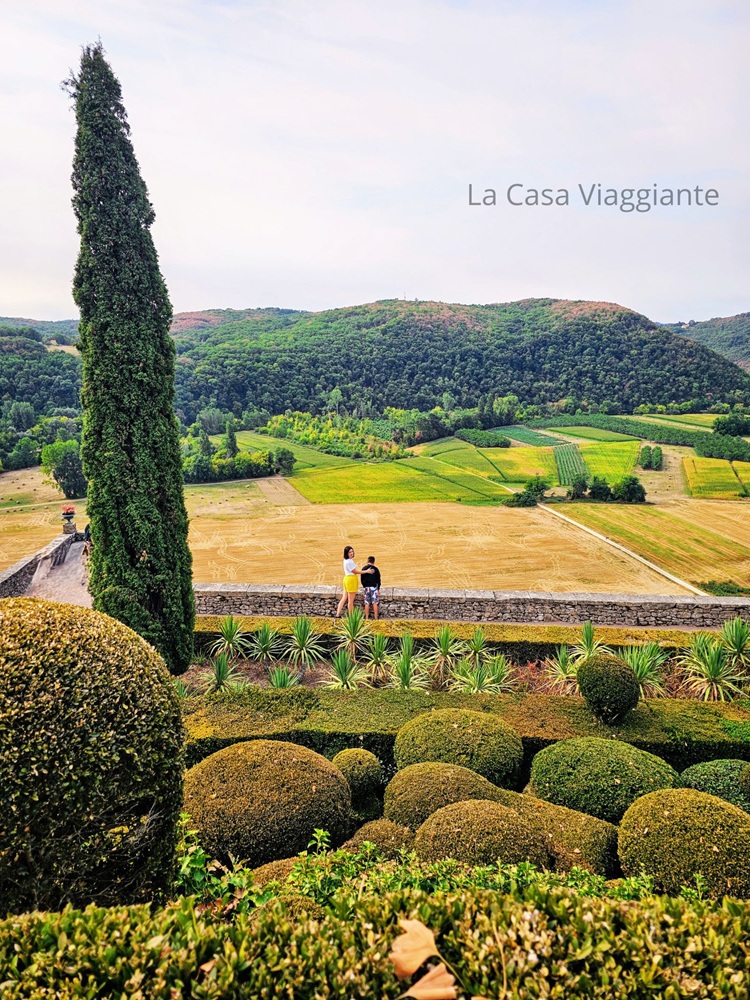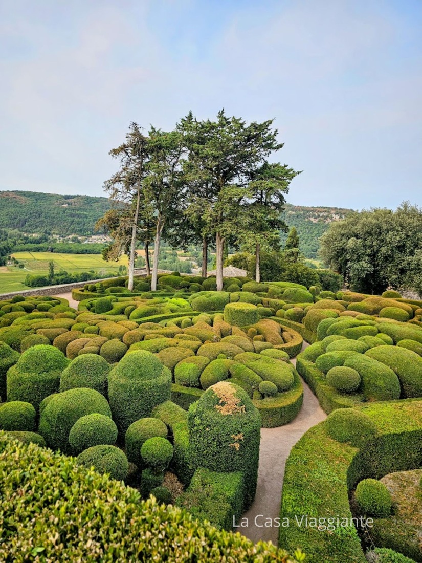 Ecco un altro luogo sorprendente che abbiamo scoperto durante questo viaggio in camper in Dordogna: I Jardins de Marqueyssac, un vasto parco che occupa un intero promontorio roccioso a picco sulla valle. Qui si trovano sentieri ombreggiati che conducono ad angolini nascosti, e a un belvedere con una vista strepitosa sul fiume, sui castelli di Castelnaud e di Beynac, e sul villaggio di La Roque-Gageac di cui vi ho parlato più su.