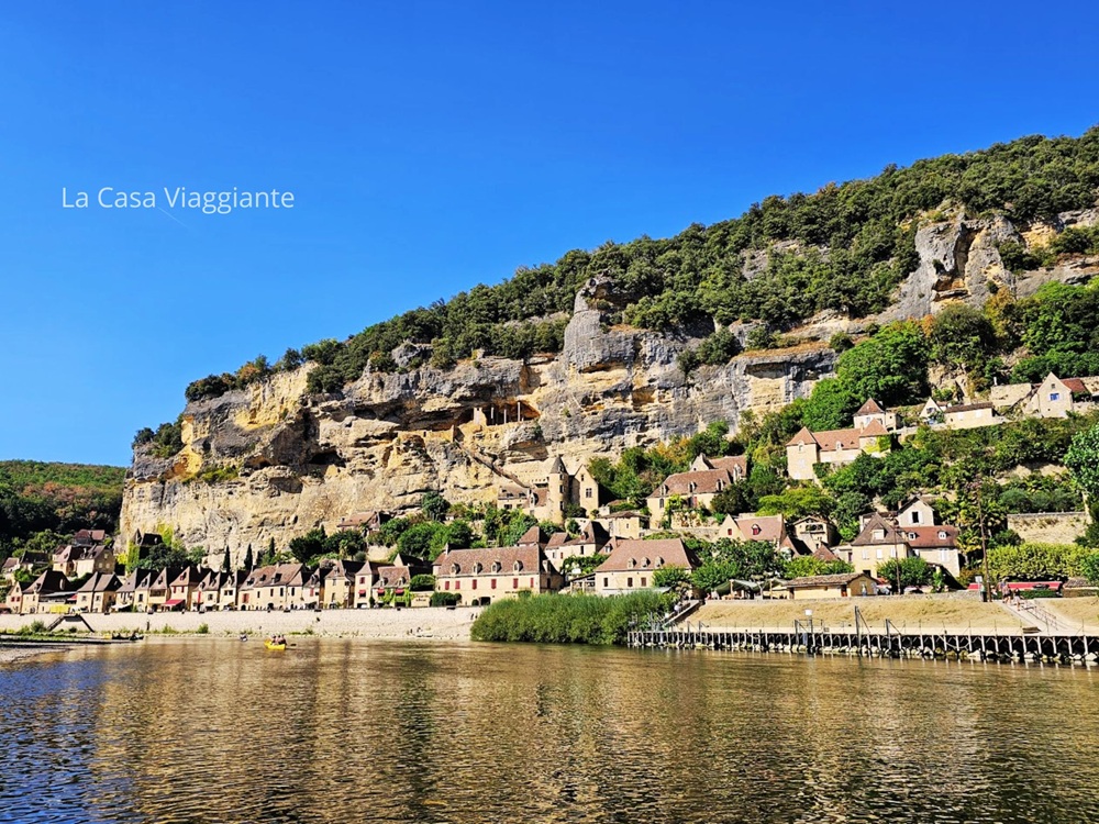La Roque-Gageac, un altro dei meravigliosi villaggi da cartolina della Dordogna, lo abbiamo visto così, dal fiume – forse la prospettiva migliore su questo incredibile paesino, incastonato tra una falesia calcarea a strapiombo e l’ansa del fiume, con le case color ocra che quasi si confondono con la roccia.