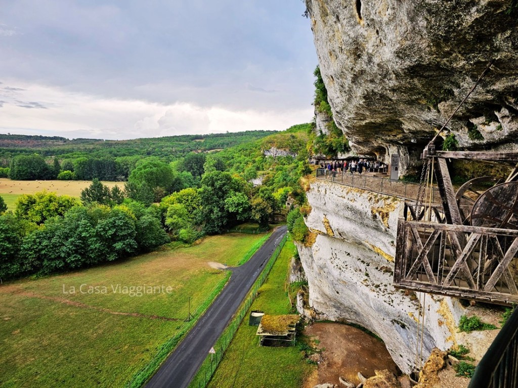 Ve l’avevo detto che una della caratteristiche di questa regione è la sua varietà: non solo villaggi, castelli e fiumi – ma ora aggiungiamo un altro tassello, quello legato alla storia. Infatti la valle della Dordogna (e della Vézère, dove si trova la Grotta di Lascaux) sono state abitate fin dalla Preistoria, e custodiscono una concentrazione unica di siti preistorici, grotte dipinte e villaggi trogloditi (ne vediamo uno più avanti).