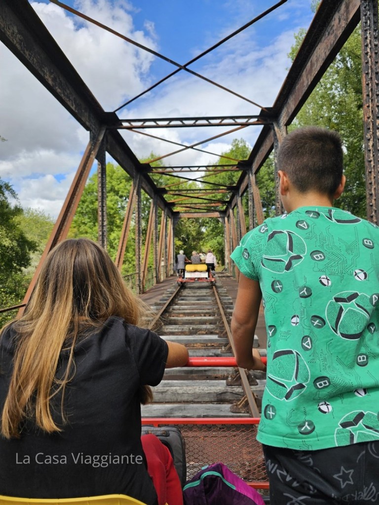 Questa esperienza farà divertire tutta la famiglia, garantito! Sapete cos’è un velorail? Si tratta di un mezzo di trasporto divertente e un po’ insolito: una sorta di bicicletta su rotaia, che ti permette di pedalare lungo vecchie linee ferroviarie immerse nella natura, senza fretta e senza traffico. Da noi praticamente non esiste, ma in Francia sono abbastanza comuni; noi lo avevamo provato anche in Belgio, durante il nostro viaggio in Vallonia – e anche la Dordogna-Périgord ha il suo tracciato, il Vélorail du Perigord Vert.
